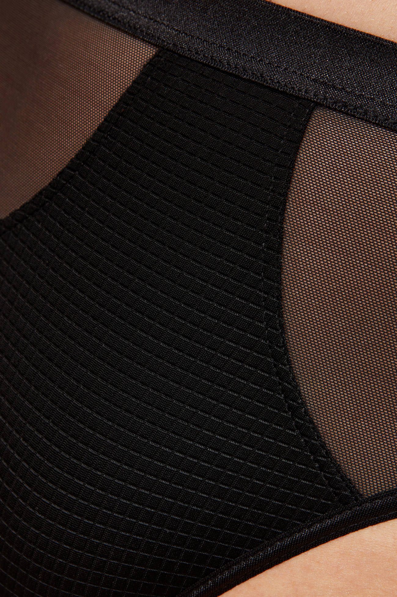 • Figi wykonane ze strukturalnej tkaniny w kratkę i tiulu elastycznego,