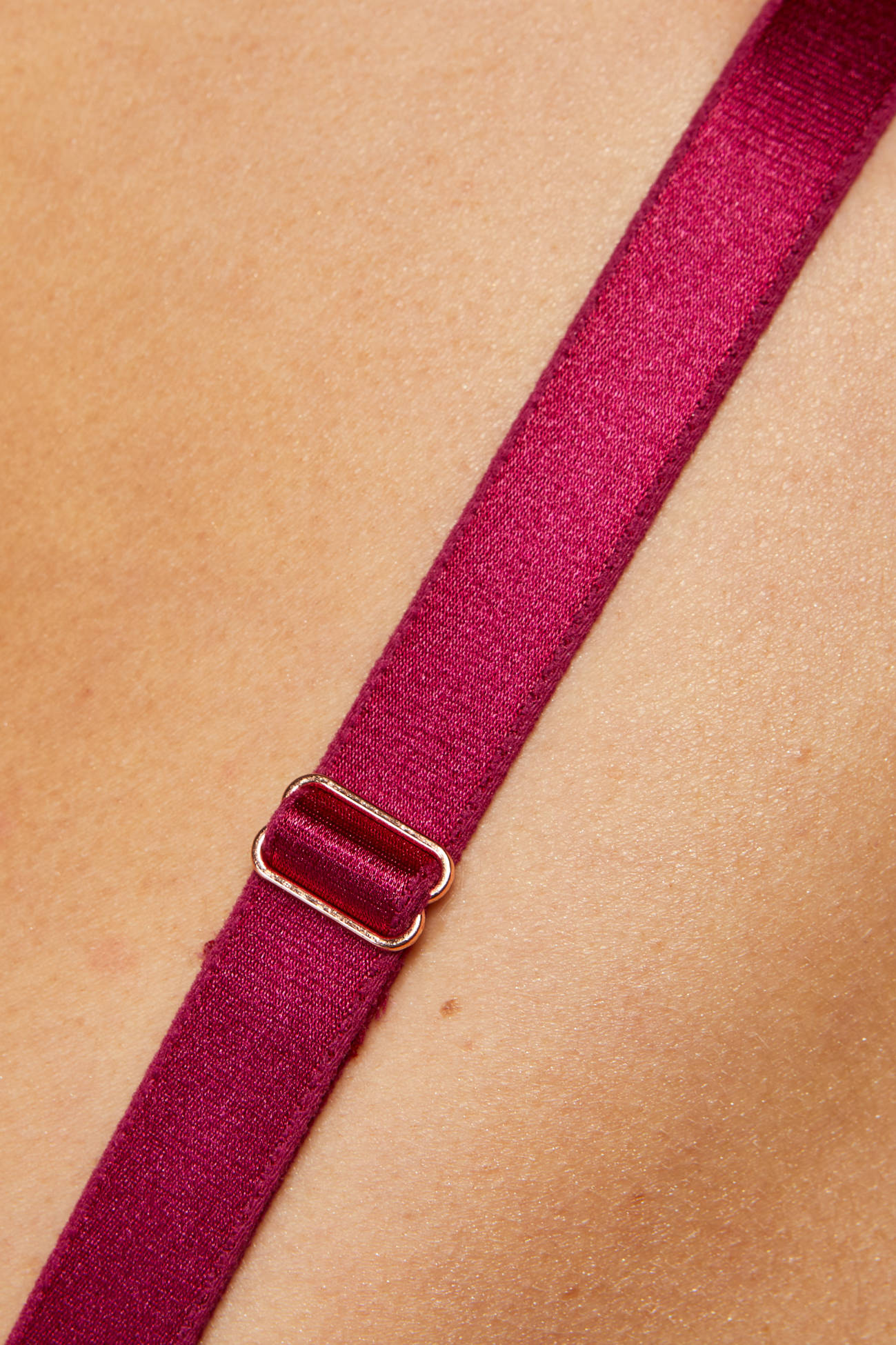 Dolna część misek wykonana z cienkiej pianki gorseciarskiej, a górna z połyskującego haftu, dzięki czemu biustonosz doskonale dopasowuje się do kształtu piersi.