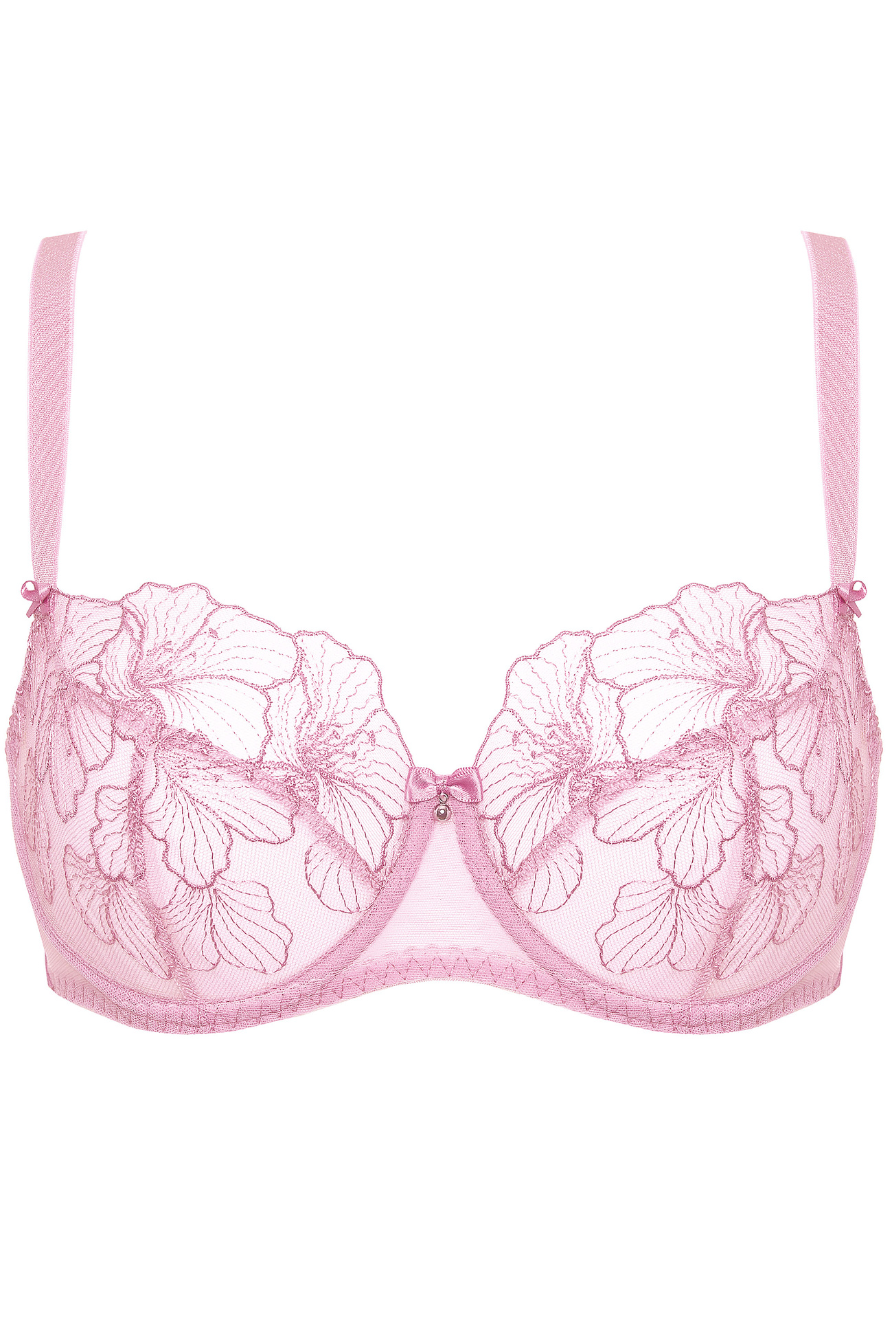 • Miękkie, półprzeźroczyste miseczki na fiszbinach, uszyte z haftu we wzór kwiatów,