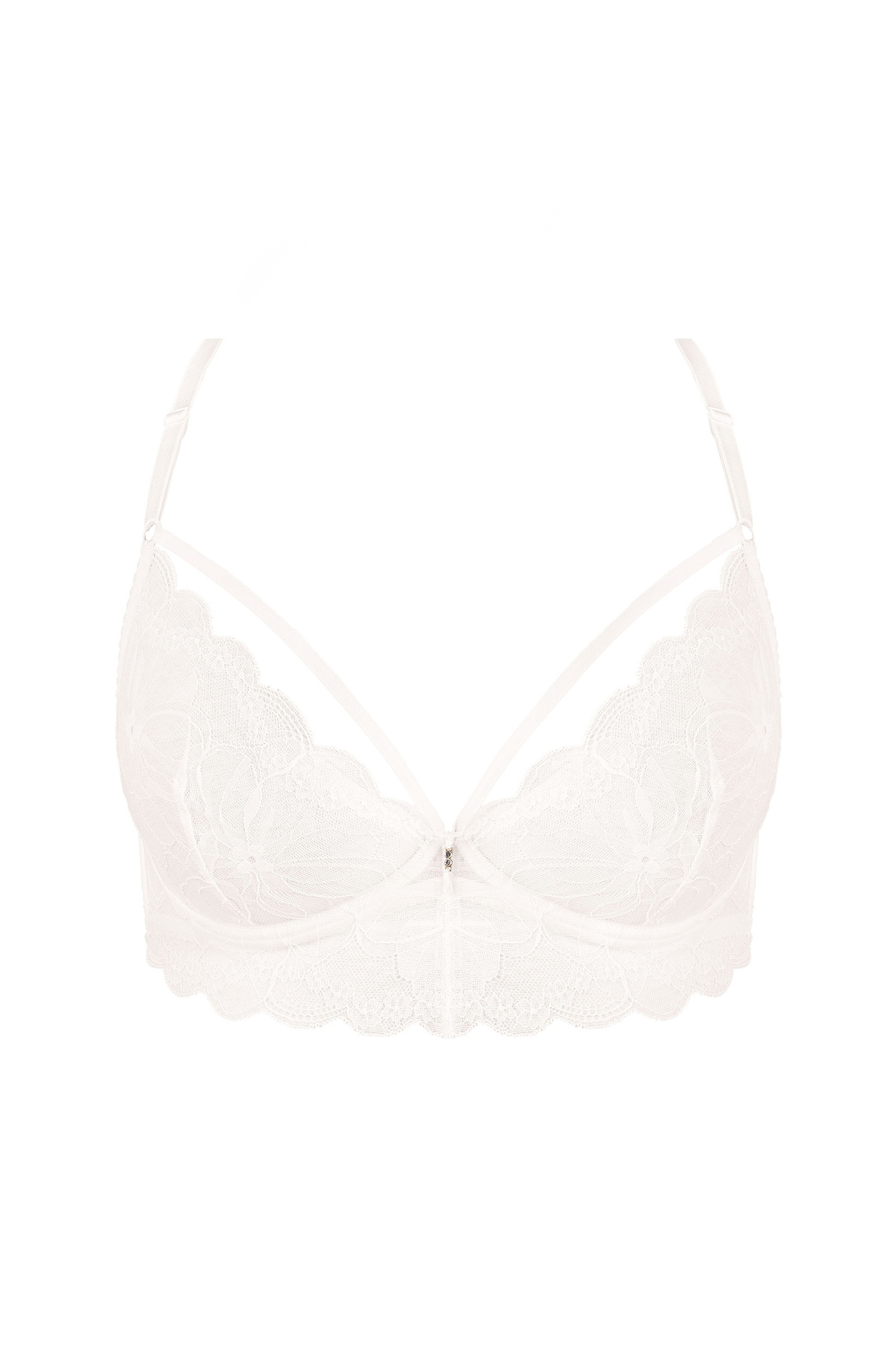 • Obwód biustonosza ozdobiony z przodu przedłużoną koronką,