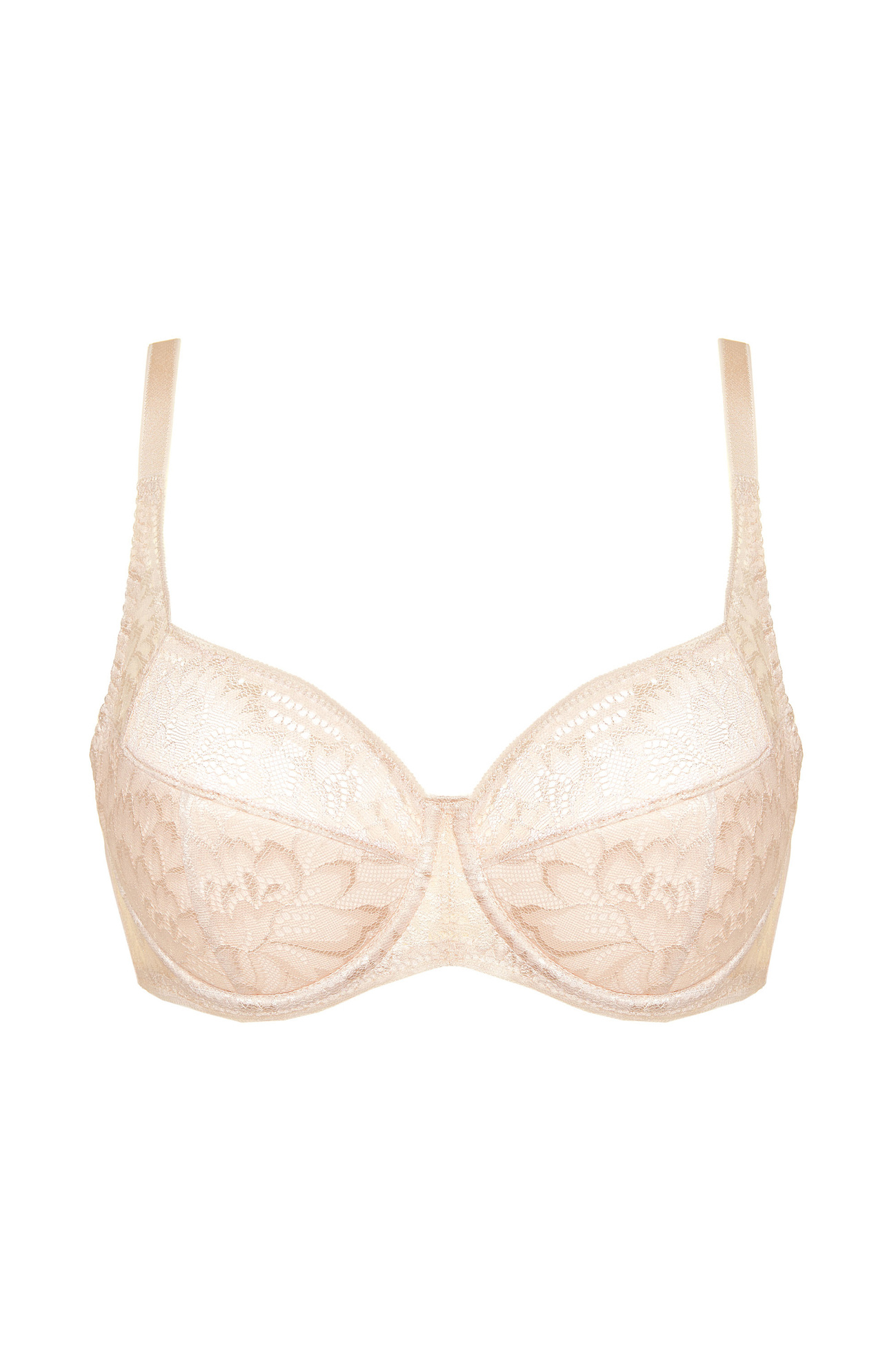 <ul><li>Dolna część misek wykonana z cienkiej pianki gorseciarskiej obszytej koronką, a górna z tiulu i koronki, dzięki czemu biustonosz doskonale dopasowuje się do kształtu piersi,</li><li>Dolną część misek pokryto od wewnątrz bawełną ze standardem OEKO-TEX®, dzięki czemu są przyjazne dla skóry,</li><li>Pionowe fiszbiny boczne stabilizują obwód biustonosza,</li><li>Biustonosz zaprojektowano i uszyto w Polsce,</li><li>W celu utrzymania bielizny w dobrej kondycji przez długi czas zaleca się delikatne pranie ręczne w temperaturze 30°C,</li><li>Modelka Agata ma 175 cm wzrostu i nosi rozmiar 70H. Modelka Gabriela ma 174 cm wzrostu i nosi rozmiar 70E.</li></ul>