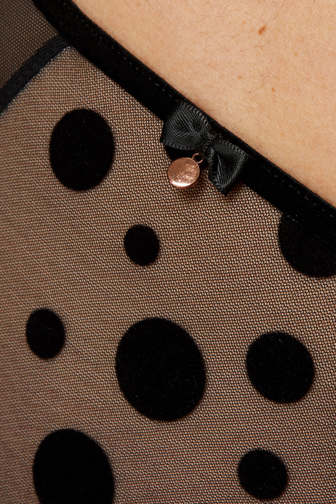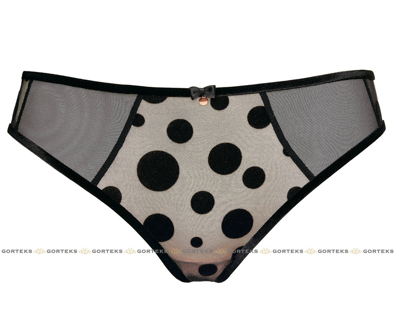 Uwodzicielskie figi wykonane z elastycznego tiulu ozdobionego flokiem w kropki.