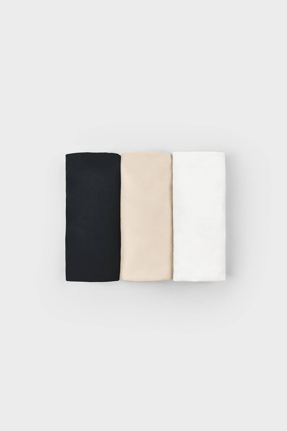 • Trójpak fig w 3 uniwersalnych kolorach pasujących do każdego ubrania: beżowym, czarnym oraz białym,