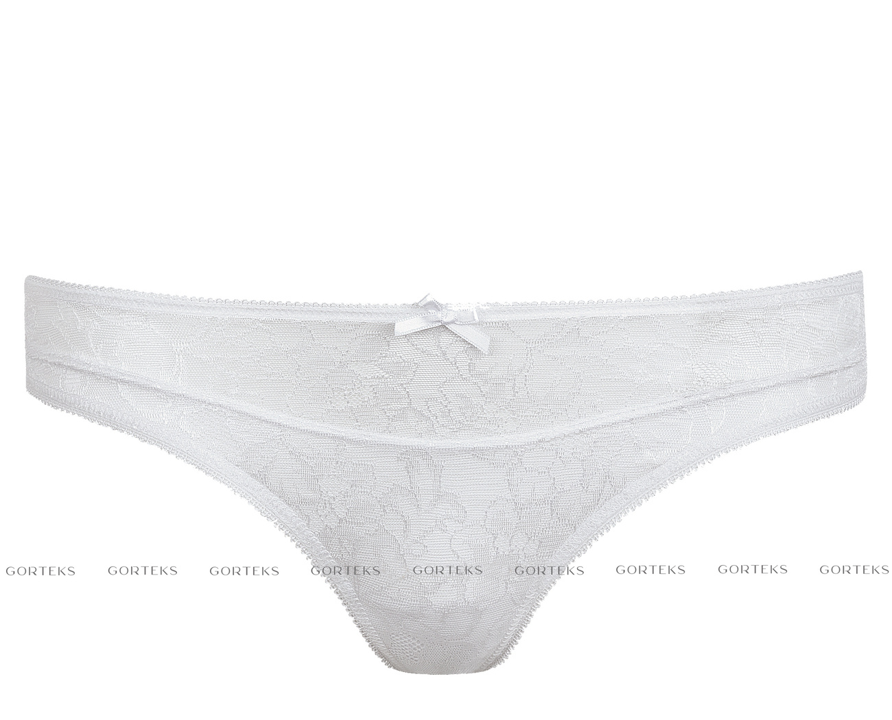 Eleganckie stringi uszyte z połyskliwej, koronkowej dzianiny.