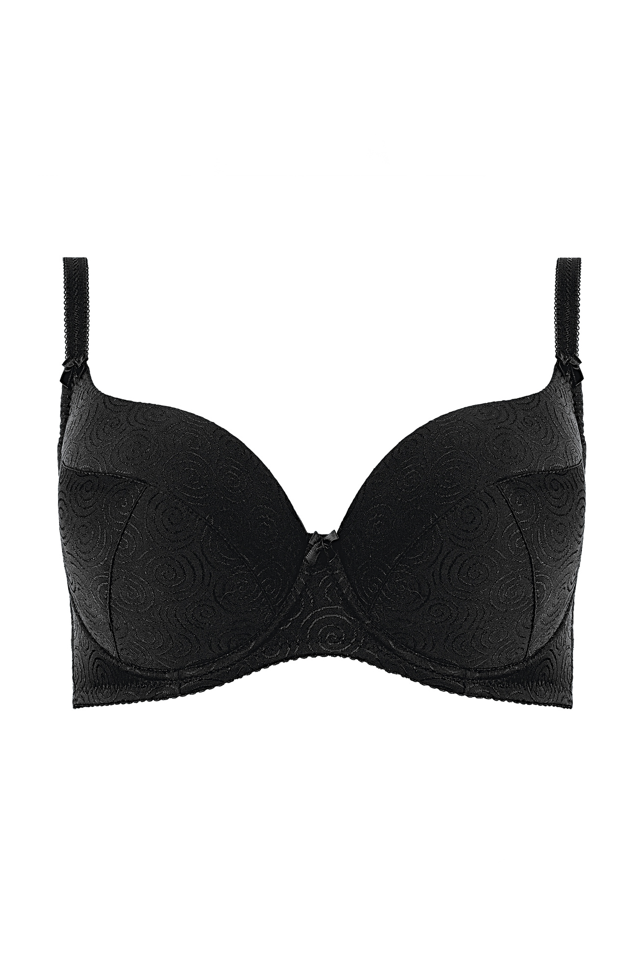 <p>Klasyczny biustonosz usztywniany doskonale podtrzymuje biust. Wykonany z delikatnej dzianiny typu żakard ozdobionej subtelnym wzorem. Między miseczkami urokliwa kokardka.</p><ul><li>Miseczki trzyczęściowe, uszyte z cienkiej pianki gorseciarskiej,</li><li>Wewnętrzna część miseczek wyściełana bawełną,</li><li>Plecy biustonosza wykonane z żakardowej dzianiny wzmocnionej tiulem elastycznym,</li><li>Regulowane, nieodpinane ramiączka ozdobione kokardkami,</li><li>Pionowe fiszbiny boczne zapobiegające marszczeniu się boczków.</li></ul>