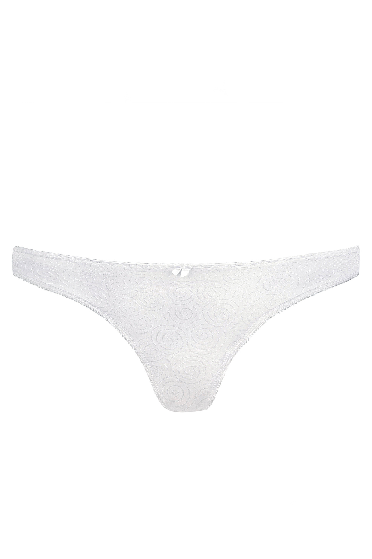 <p>Klasyczne stringi wykonane z delikatnej dzianiny typu żakard ozdobionej subtelnym wzorem.</p><ul><li>Atłasowa kokardka z przodu bielizny,</li><li>Bawełniany klinek gwarantujący wygodę i komfort noszenia.</li></ul>