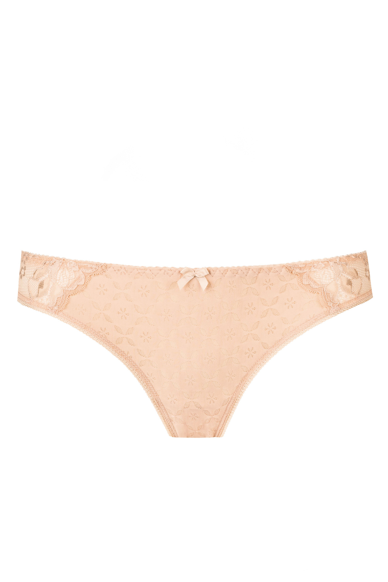 Subtelne figi wykonane z delikatnej dzianiny typu żakard ozdobionej kwiatowym motywem. Uroku dodaje im piękna koronka zdobiąca boczki.