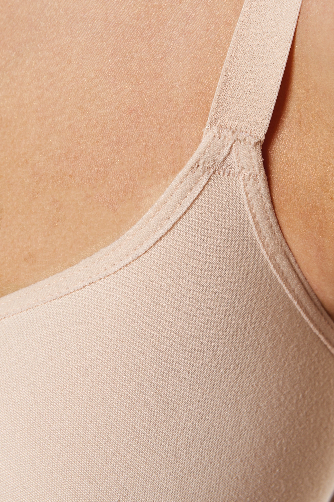 Gładkie, termicznie formowane miseczki delikatnie unoszą biust, zapewniając naturalny kształt i komfort noszenia,