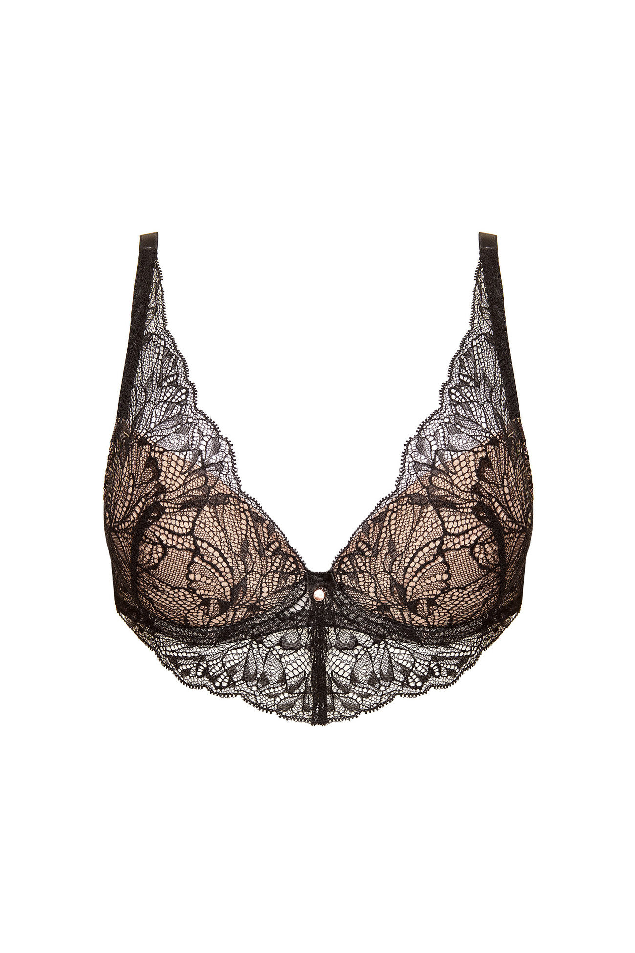 • Przód wydłużony dodatkową koronką poniżej misek,