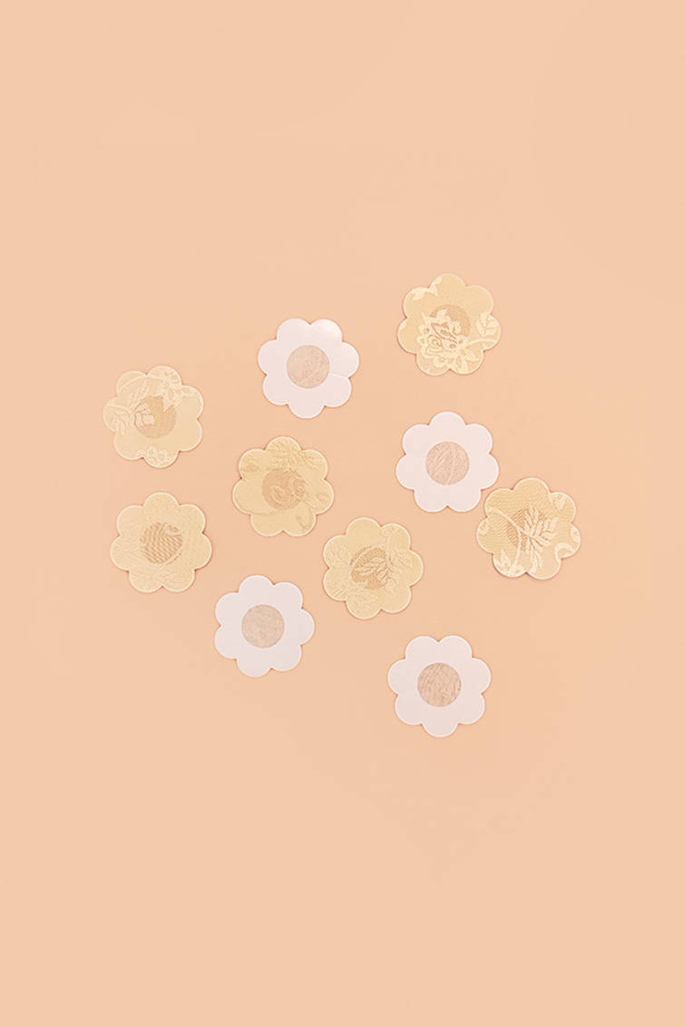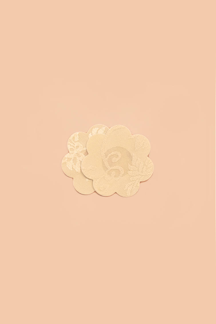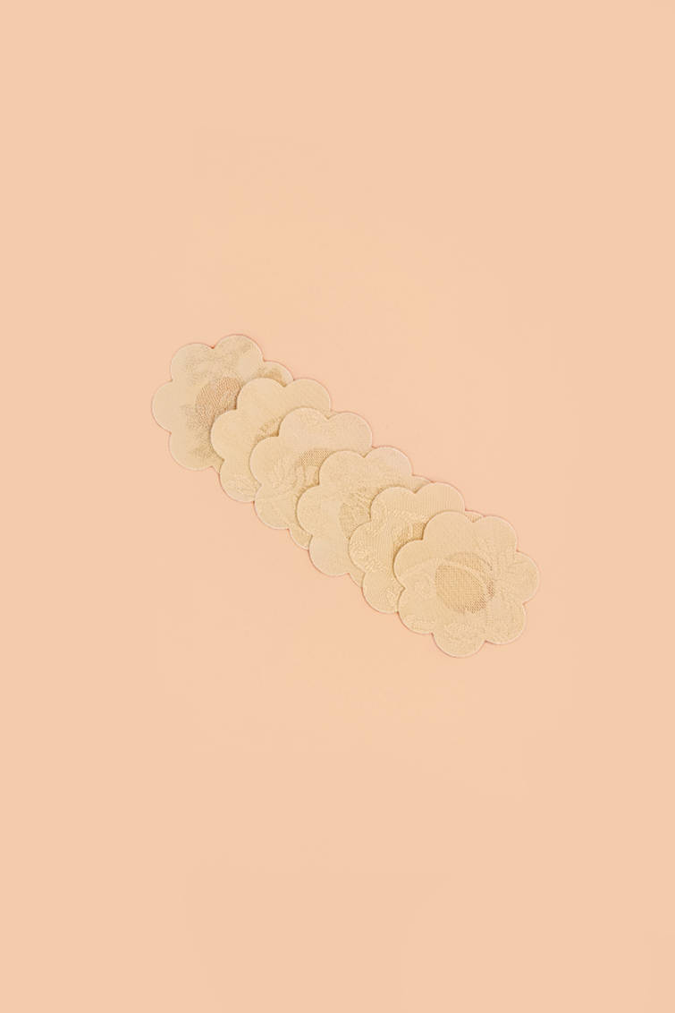 Samoprzylepne osłonki na brodawki wykonane z przyjemnego w dotyku, cienkiego materiału imitującego koronkę. Cielisty kolor zapewnia komfort i dyskrecję. Osłonki jednorazowe. Idealnie stapiają się z barwą skóry. Opakowanie zawiera 1 parę osłonek (2 sztuki).