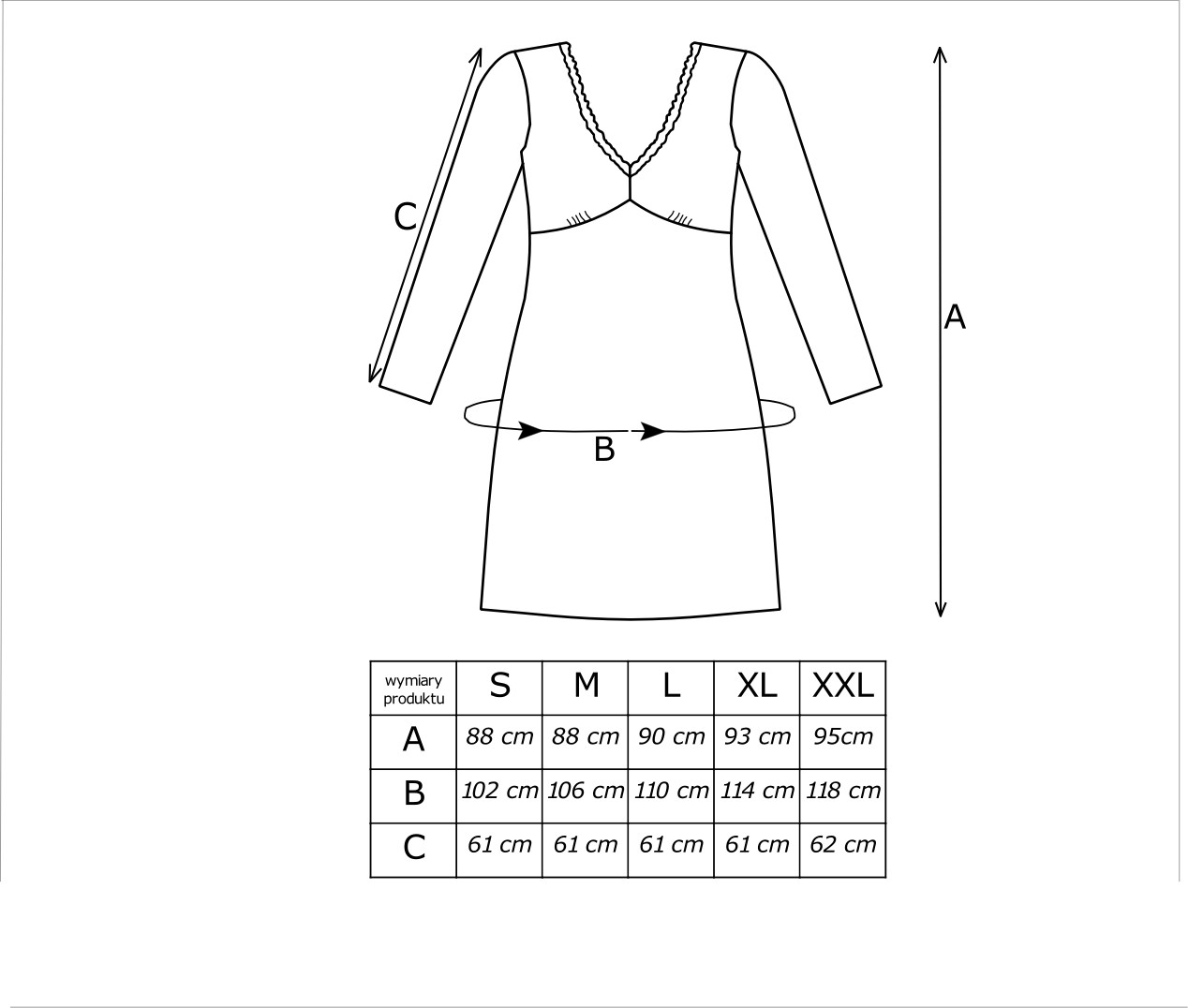 - brak gumki pod biustem, luźny komfortowy fason