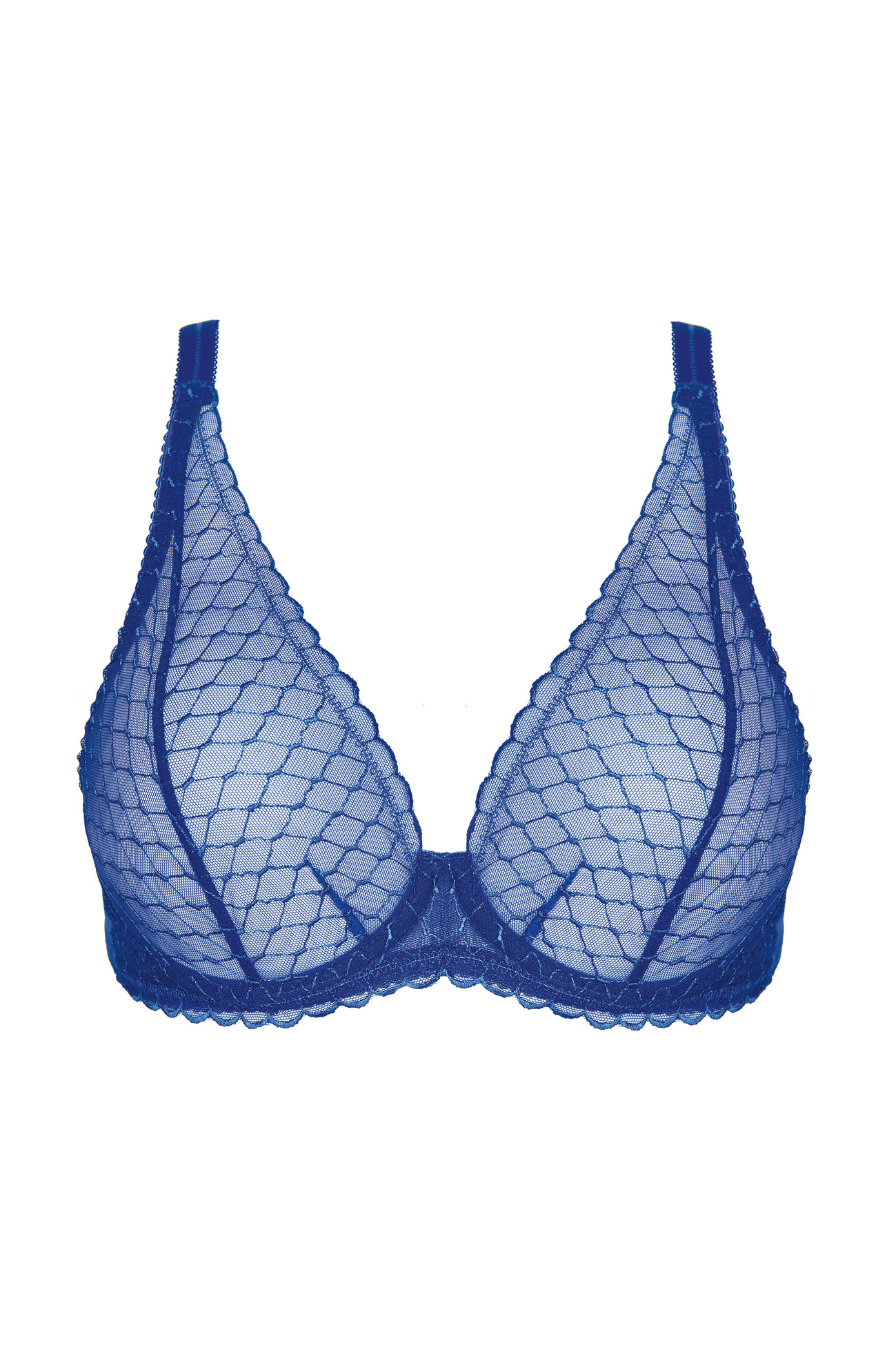 • Prześwitujące miski z przykuwającego uwagę, połyskującego haftu o wzorze przypominającym syreni ogon,