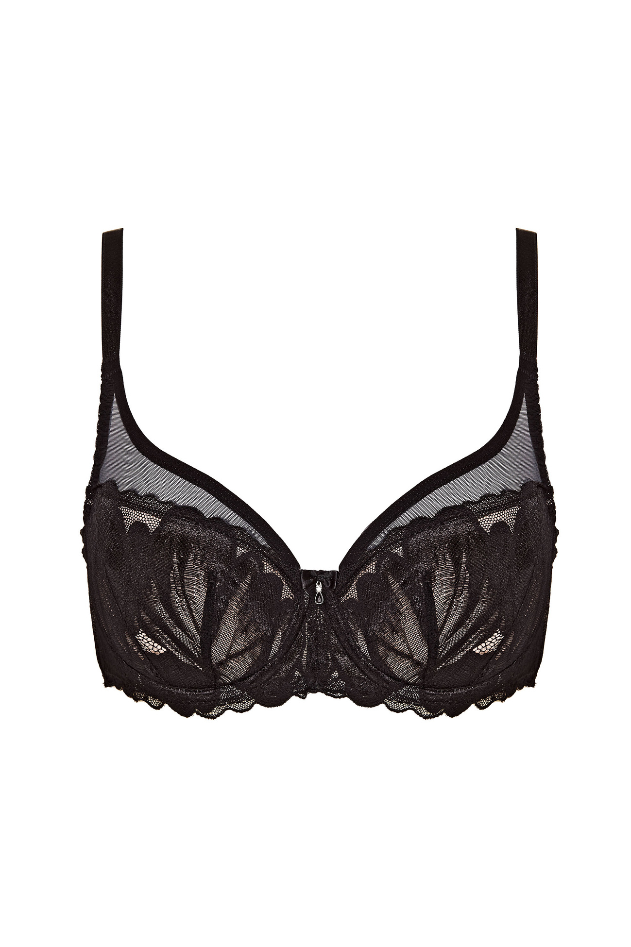 Zjawiskowy biustonosz usztywniany podtrzymuje piersi, nadając im piękny kształt. Wykonany z pianki gorseciarskiej pokrytej nietuzinkową koronką o kwiatowym motywie.