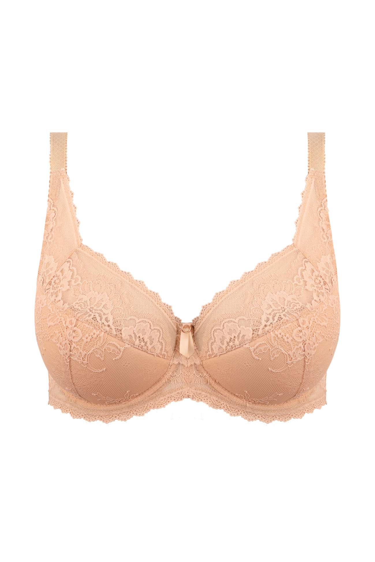 Dziewczęcy biustonosz półusztywniany doskonale modeluje piersi. Miseczki obszyto koronką o subtelnym, kwiatowym wzorze.