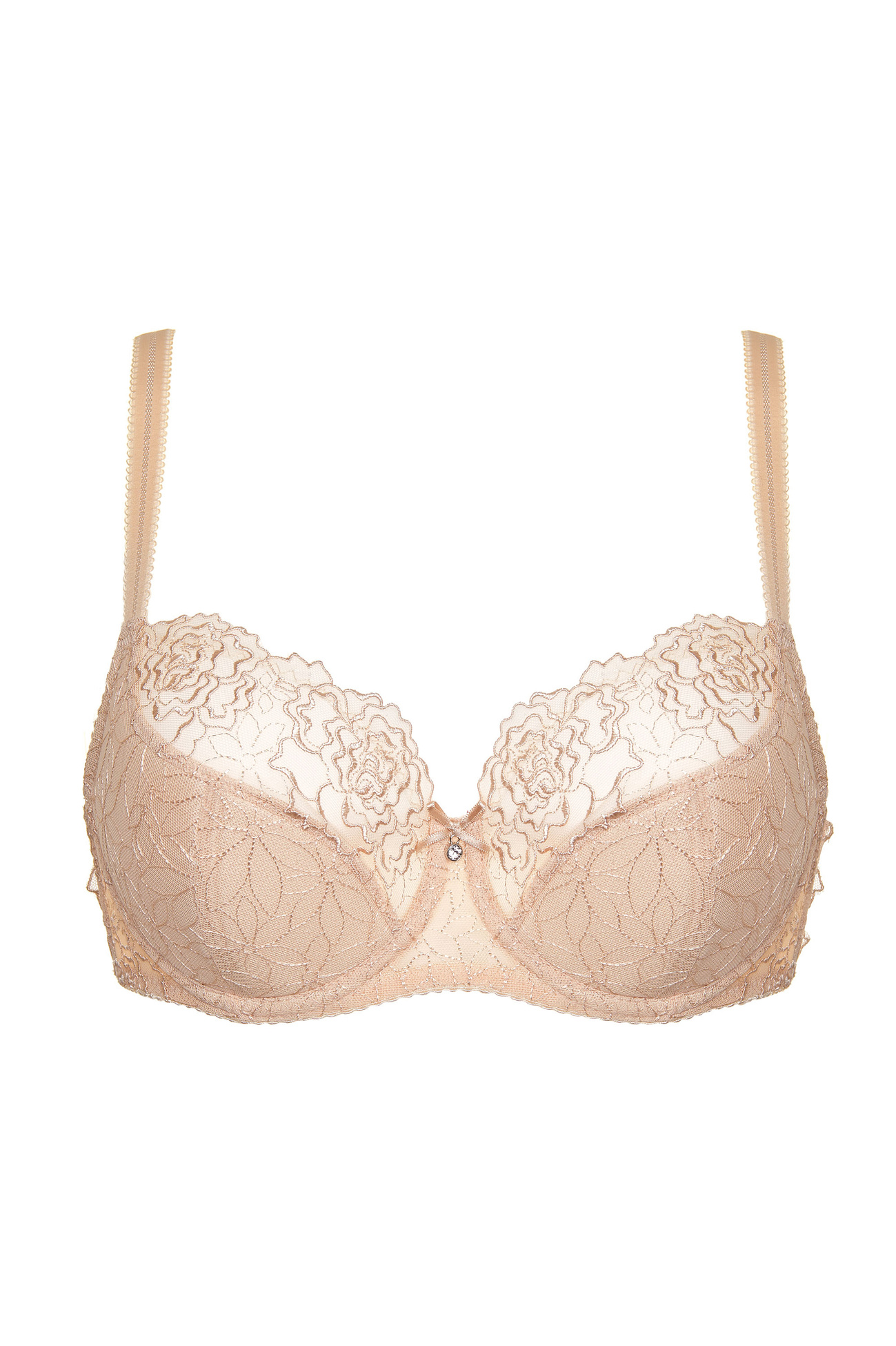 • Dolna część misek wykonana z cienkiej pianki gorseciarskiej, a górna z haftu, dzięki czemu biustonosz doskonale dopasowuje się do kształtu piersi,