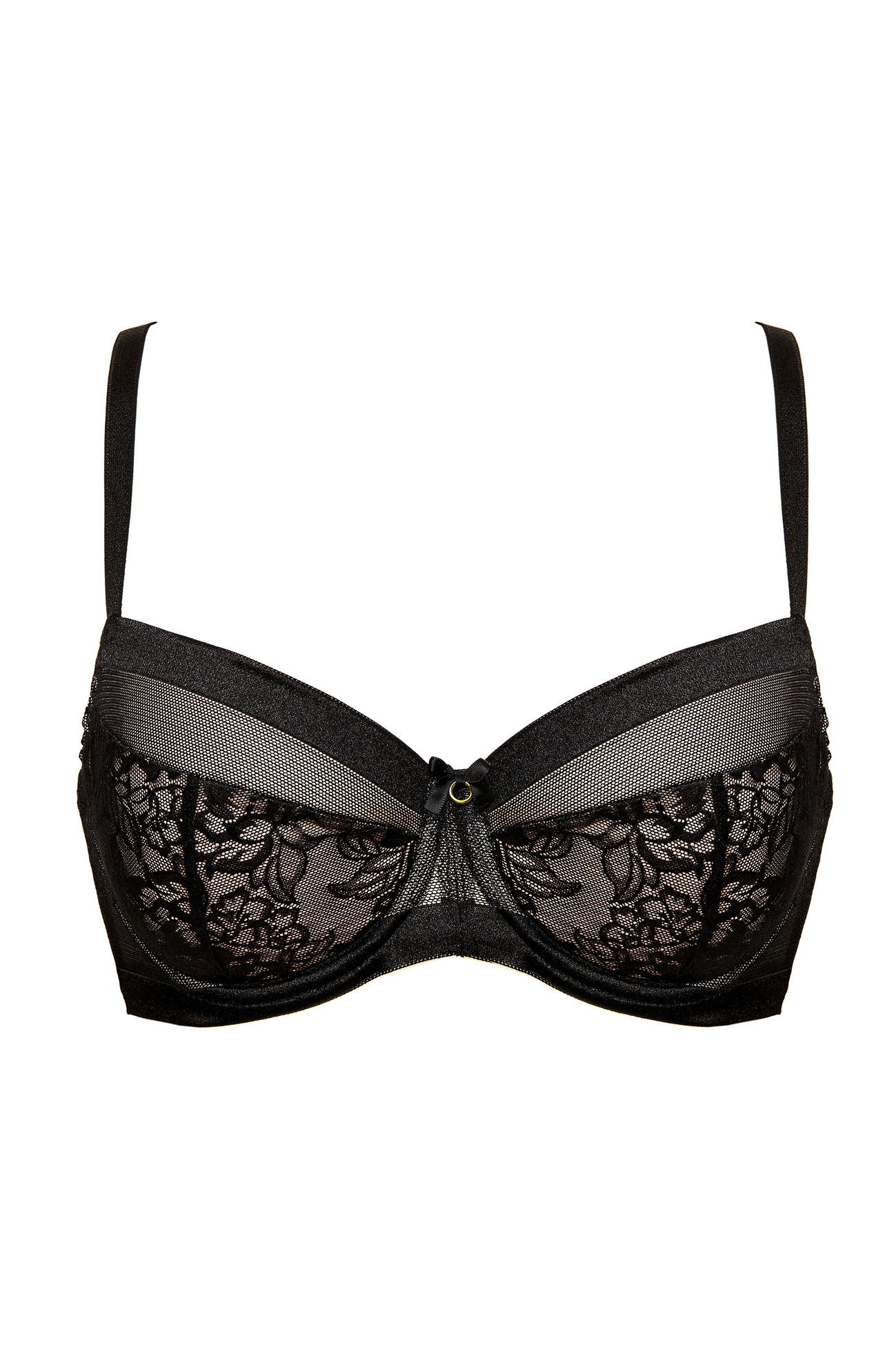 <p>Uwodzicielski biustonosz usztywniany doskonale podkreśla kobiece kształty. Miseczki zostały pokryte koronką z motywem kwiatowym i satynowym wykończeniem.</p><ul><li>Miski trzyczęściowe, uszyte z cienkiej pianki gorseciarskiej,</li><li>Wewnętrzna część miseczek wyściełana bawełną,</li><li>Plecy wykonane z koronki wzmocnionej tiulem,</li><li>Ramiączka regulowane, nieodpinane,</li><li>Pionowe fiszbiny boczne zapobiegające marszczeniu się boczków,</li><li>Pomiędzy miseczkami umieszczona delikatna ozdoba.</li></ul>