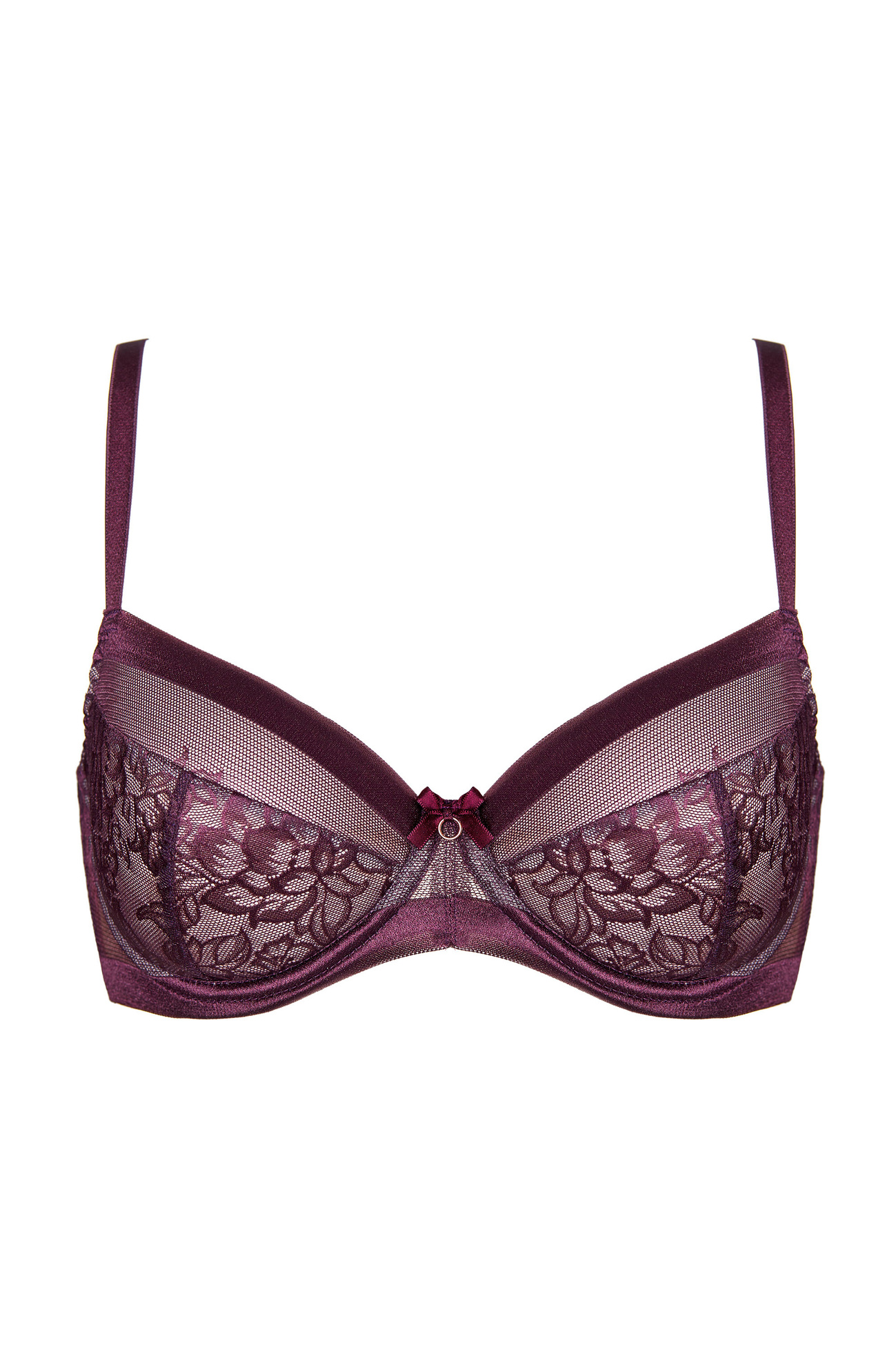 Uwodzicielski biustonosz usztywniany doskonale podkreśla kobiece kształty. Miseczki zostały pokryte koronką z motywem kwiatowym i satynowym wykończeniem.