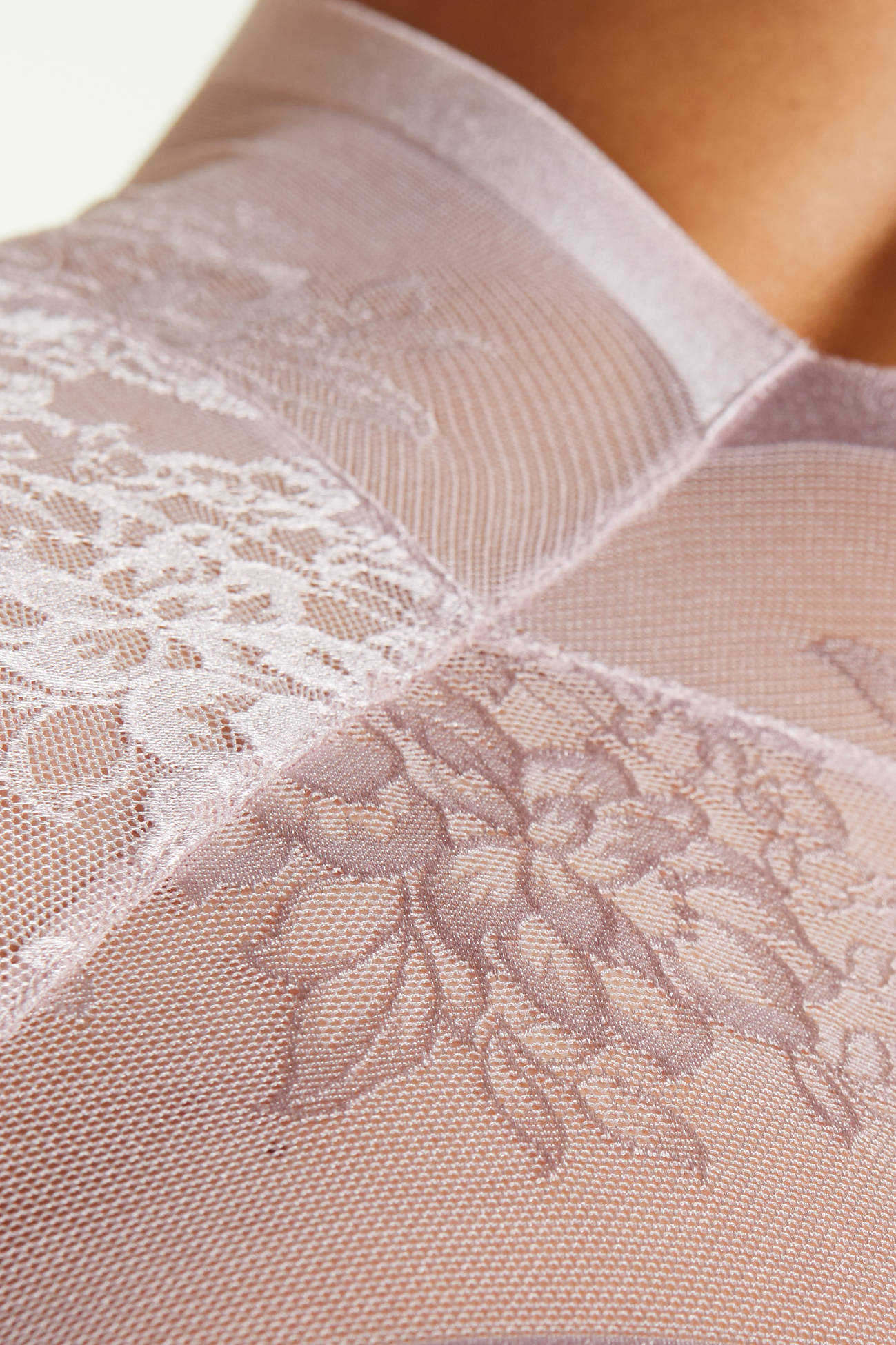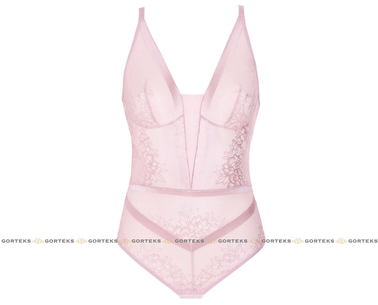 Uwodzicielskie body delikatnie modeluje sylwetkę. Wykonane z elastycznej koronki o kwiatowym wzorze i satynowym wykończeniu.