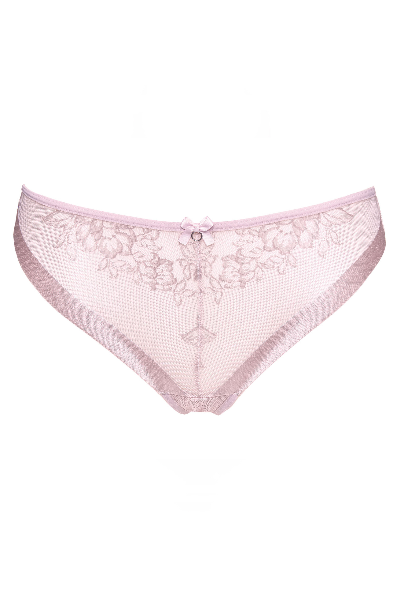 Uwodzicielskie stringi wykonane w całości z koronki o kwiatowym motywie i satynowym wykończeniu.