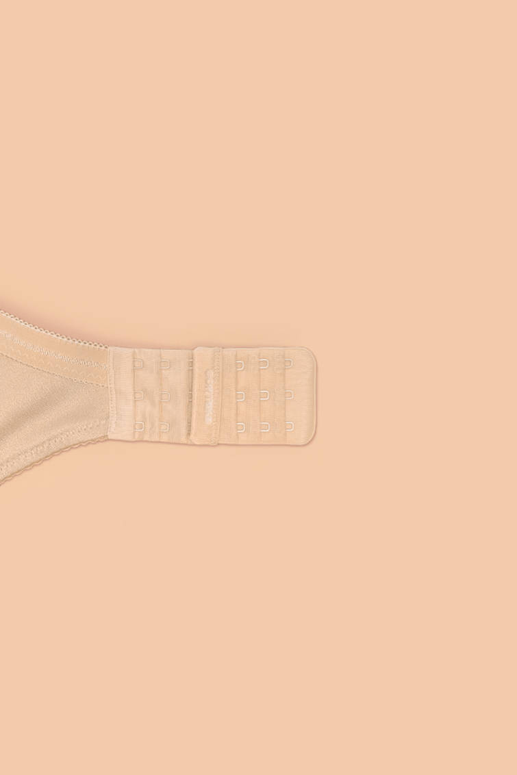 Przedłużacz umożliwiający zwiększenie obwodu biustonosza zapinanego haftkę trzyrzędową. Dostępny w trzech kolorach: białym, beżowym i czarnym.
