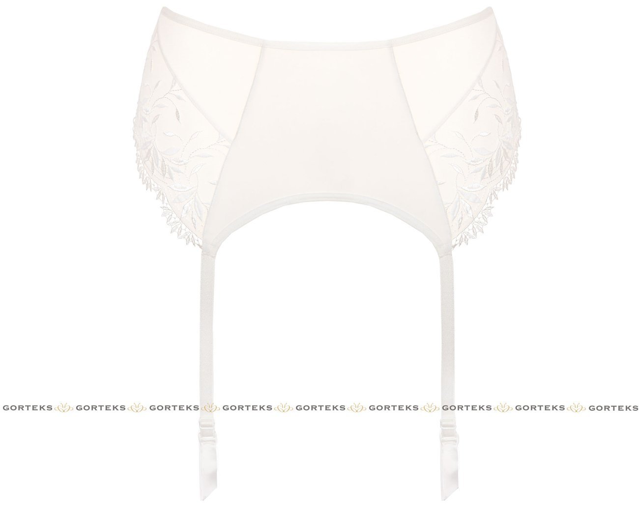 Elegancki niski pas do pończoch wykonany z dzianiny gładkiej, tiulu i zjawiskowego haftu.