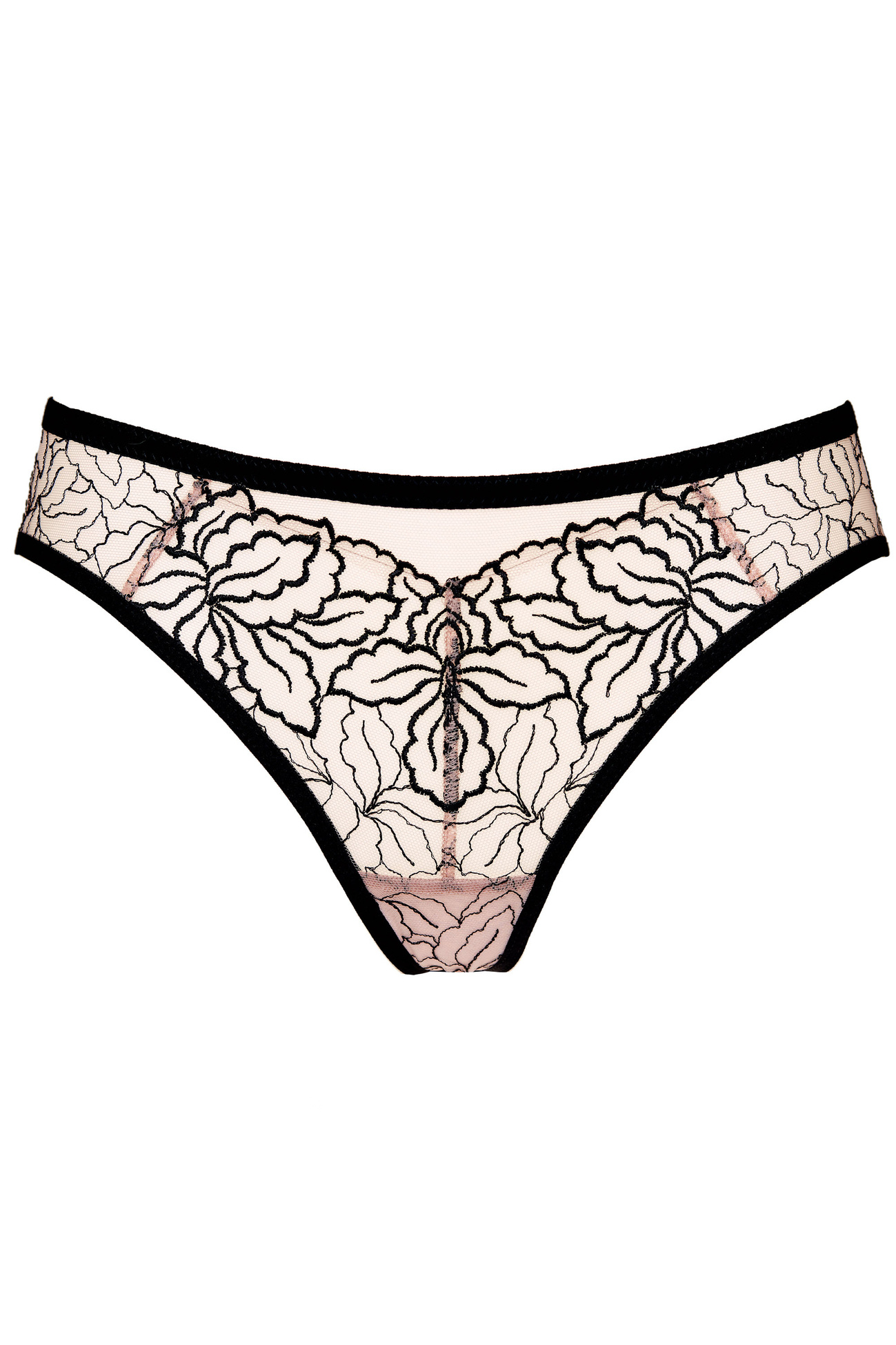 Zjawiskowe stringi wykonane z tiulu oraz nietuzinkowego haftu.