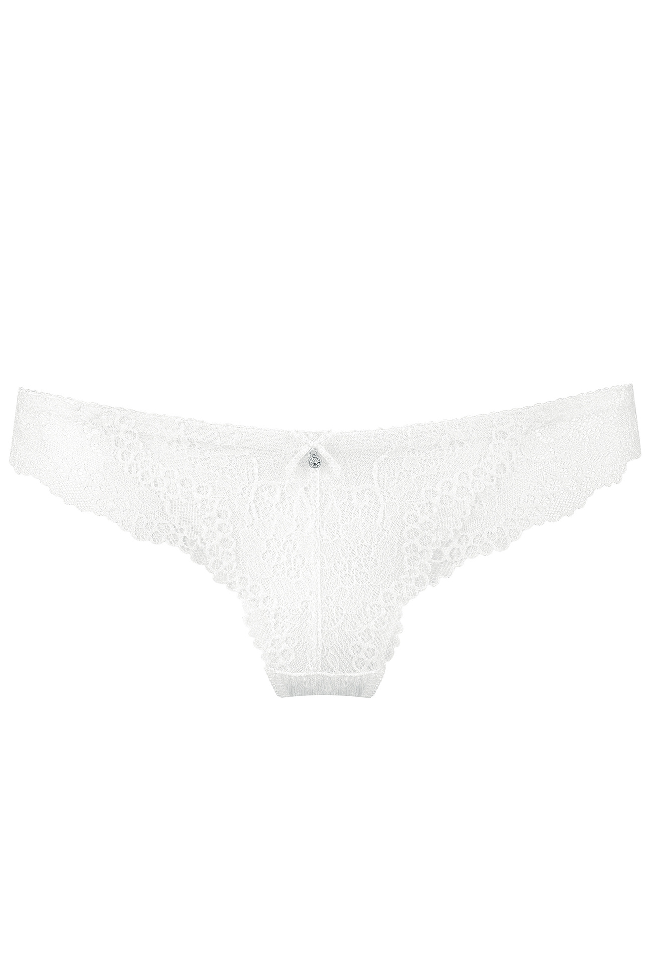 • Koronkowe stringi z małą ozdobą na przodzie bielizny,