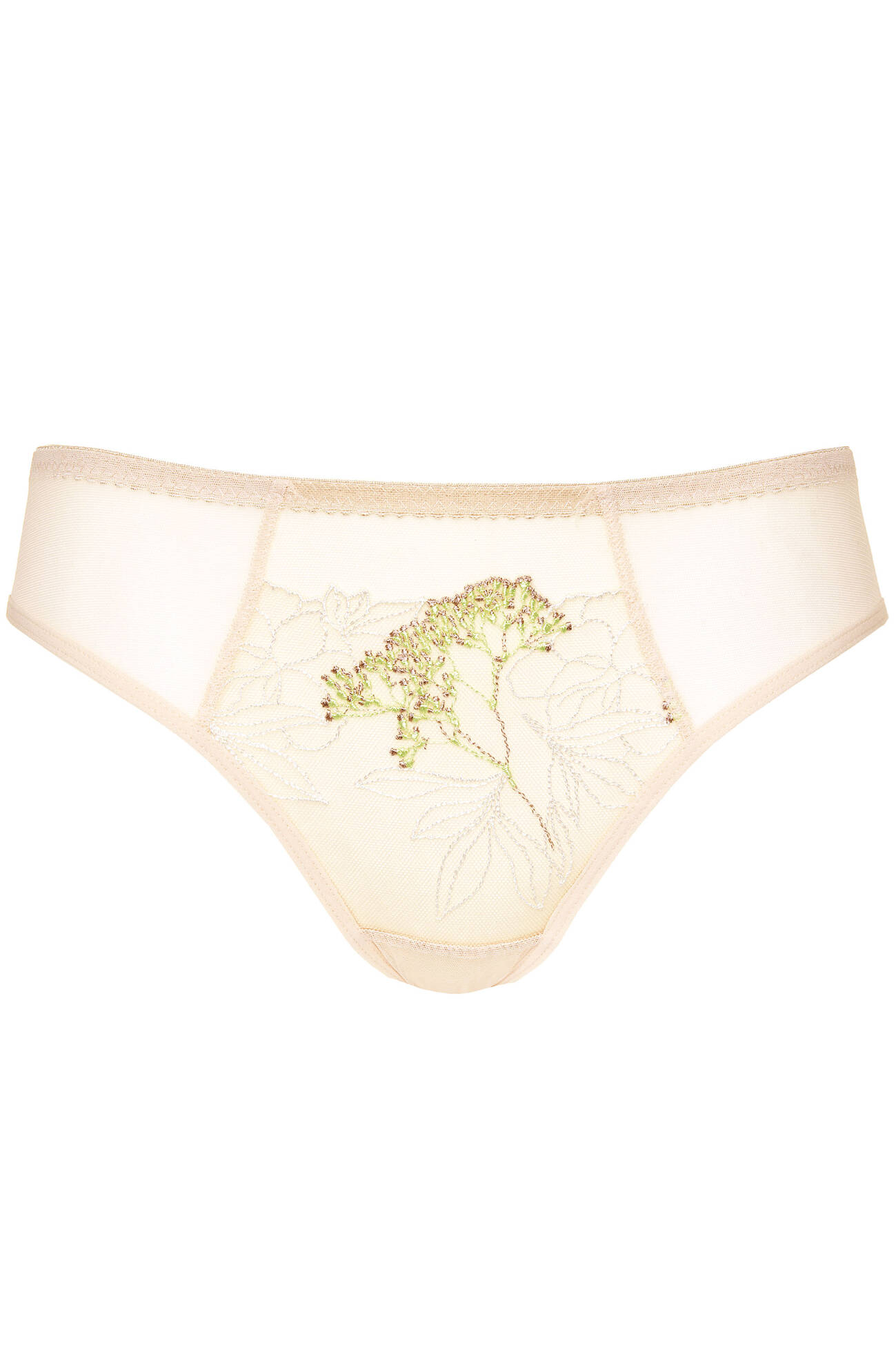 • Figi z miękkiego tiulu i kolorowego haftu w roślinny wzór,