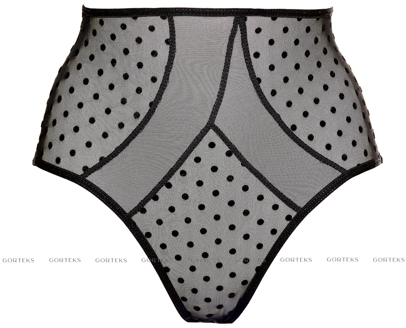 <p>Kobiece wysokie figi wykonane z elastycznego tiulu ozdobionego flokiem w groszki.</p><ul><li>Bawełniany klinek gwarantujący wygodę i komfort noszenia.</li></ul>