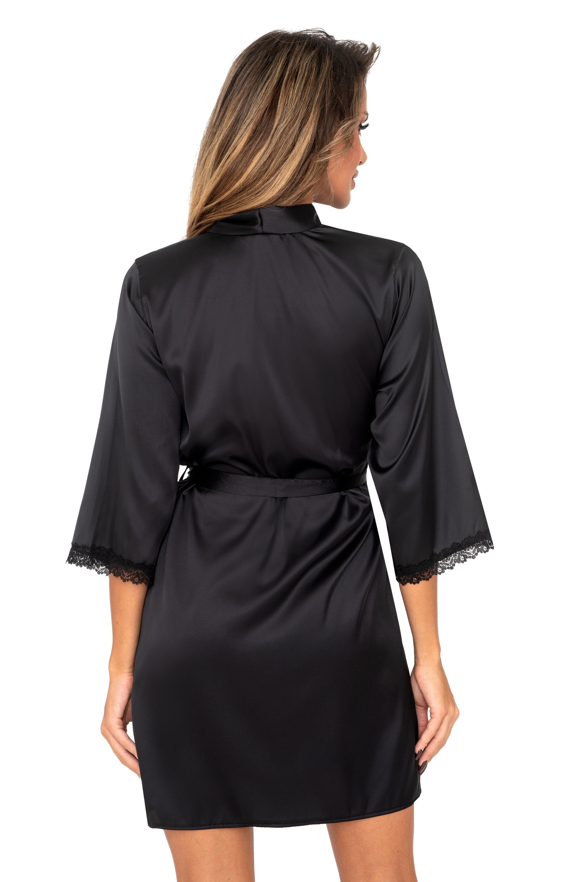Bardzo elegancki i klastyczny szlafrok satynowy Tiffani. Fason z połami zachodzącymi na siebie kopertowo, przewiązywany paskiem. Rękawki długości 3/4, zakończone delikatną koronką. Dół sięgający do połowy uda. Posiada również wygodne kieszenie. Szlafrok dostępny w kilku wariantach kolorystycznych.