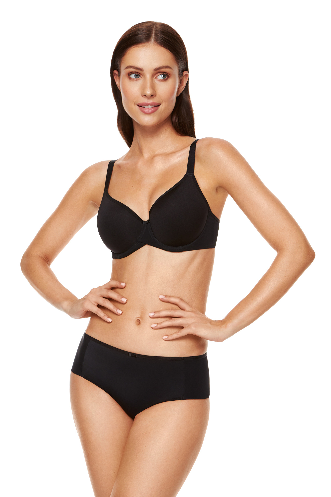Klasyczny, gładki biustonosz delikatnie modeluje i unosi biust. Bieliźnie uroku dodaje delikatna wstążeczka umieszczona między miseczkami.