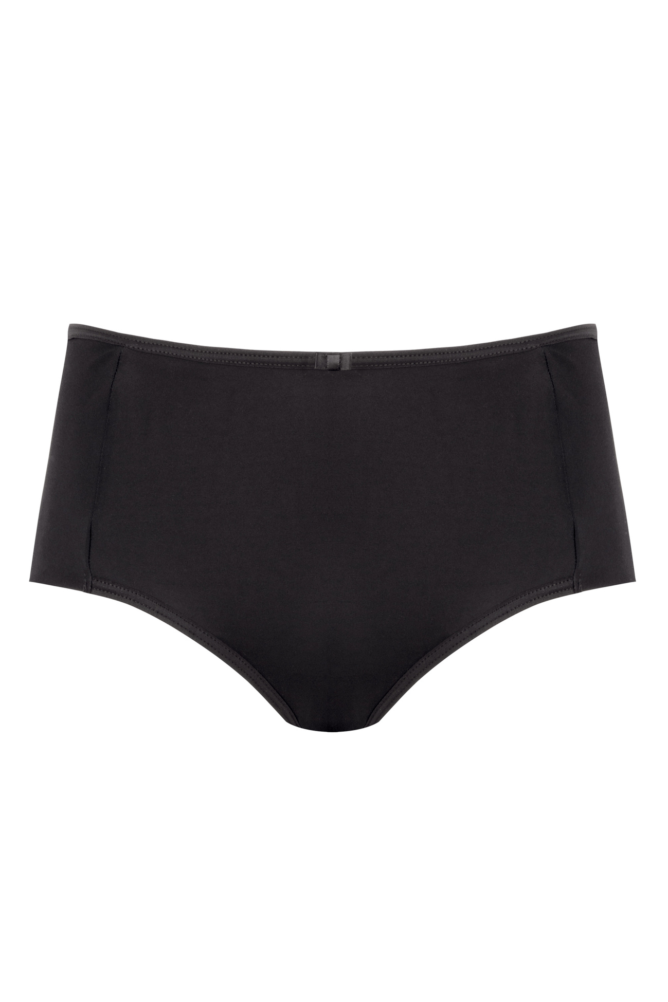 <p>Klasyczne figi wykonane z gładkiej czarnej dzianiny.</p><ul><li>Kokardka umieszczona z przodu bielizny,</li><li>Bawełniany klinek gwarantujący wygodę i komfort noszenia.</li></ul>