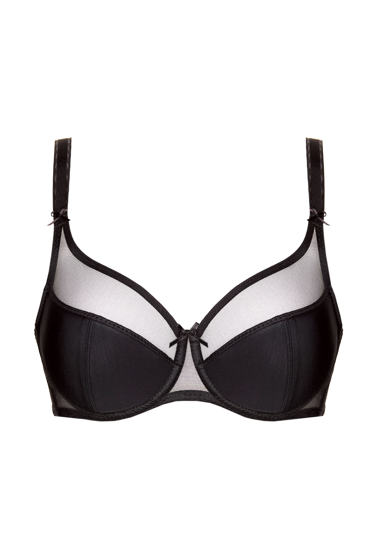 • Dolna część misek wykonana z cienkiej pianki gorseciarskiej, a górna z tiulu, dzięki czemu biustonosz doskonale dopasowuje się do kształtu piersi,